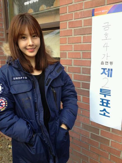 공개된 사진 속 박은지는 수수한 점퍼 차림과 화장기 없는 얼굴로 투표소로 향한 모습이다. 박은지는 두터운 점퍼로 가렸어도 숨길 수 없는 가냘픈 몸매를 드러내며 청순미를 뽐낸다.