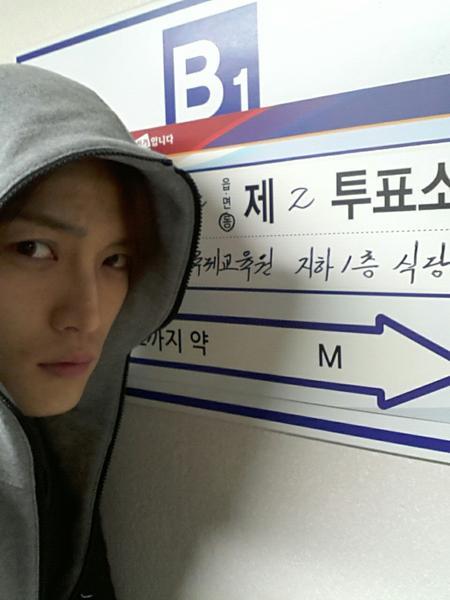 김재중은 제 18대 대통령 선거일인 19일 오후 서울 삼성동 강남구청 삼성동 제 5투표소를 찾았지만 본인의 지정 투표소가 아님을 확인하고 발길을 돌렸다.