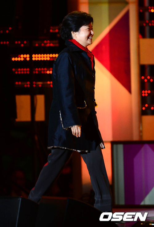 19일 실시된 제18대 대통령 선거에서 당선이 확정된 박근혜 새누리당 대선후보가 서울 광화문 광장에서 대국민 메시지를 전하기 위해 무대를 오르고 있다.