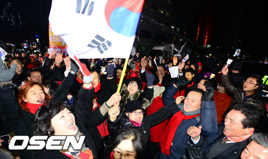 한편 이날 개표 89.7%가 완료된 시점에서 박 당선인은 51.6% 1415만여표를 얻어 48.0% 1316만여표에 그친 문재인 후보를 누르고 사실상 당선을 확정 지었다./ soul1014@osen.co.kr
