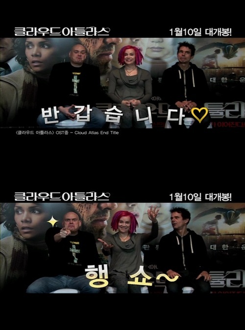 '클라우드 아틀라스'는 20일 앤디&라나 워쇼스키 감독과 톰 티크베어의 한국 사랑 모습이 담긴 '한국 사랑 영상'을 공개해 화제다.