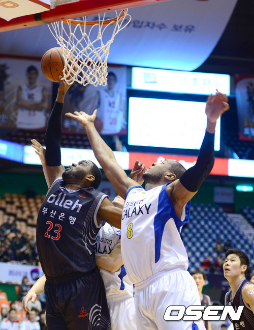 20일 오후 부산 실내체육관에서 열린 'KB 국민카드 2012-2013 프로농구' KT 소닉붐과 삼성 썬더스와의 3라운드 경기, 1쿼터 KT존슨이 골밑슛을 시도 하고 있다.