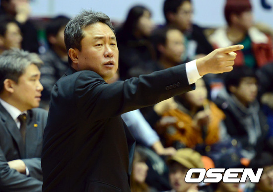 20일 오후 부산 실내체육관에서 열린 'KB 국민카드 2012-2013 프로농구' KT 소닉붐과 삼성 썬더스와의 3라운드 경기, 3쿼터 KT 전창진 감독이 경기를 지켜보며 작전을 지시하고 있다.