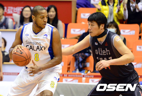 20일 오후 부산 실내체육관에서 열린 'KB 국민카드 2012-2013 프로농구' KT 소닉붐과 삼성 썬더스와의 3라운드 경기, 3쿼터 KT 서장훈이 삼성 타운스를 수비하고 있다.