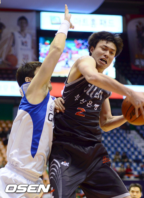 20일 오후 부산 실내체육관에서 열린 'KB 국민카드 2012-2013 프로농구' KT 소닉붐과 삼성 썬더스와의 3라운드 경기, 4쿼터 KT송영진이 리바운드를 잡아내고 있다.