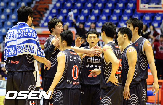 20일 오후 부산 실내체육관에서 열린 'KB 국민카드 2012-2013 프로농구' KT 소닉붐과 삼성 썬더스와의 3라운드 경기, KT 선수들이 승리의 기쁨을 나누고 있다.