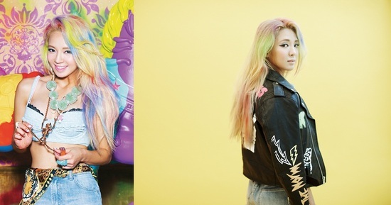 효연은 공개된 이미지에서 상의에 브래지어만 착용한 과감한 패션을 선보였다. 특히 알록달록한 헤어색도 눈에 띈다.