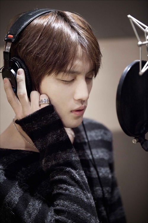 그룹 JYJ의 김재중이 솔로 미니 앨범 발표를 앞두고 녹음실 사진을 공개했다.