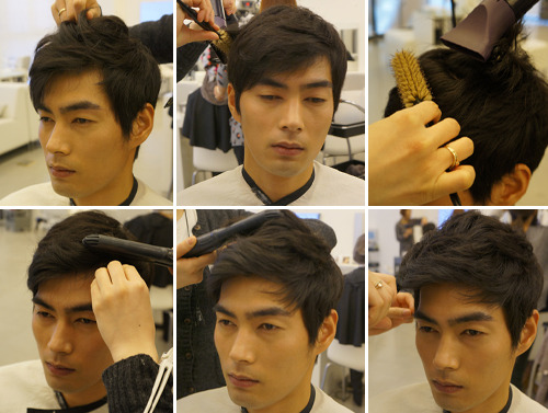 “사용하는 고데기의 형태는 일자로 납작한 것입니다. 웨이브나 볼륨 넣기가 자신 없는 남자라면 둥근 고데기를 활용하는 것도 좋습니다. 만일 고데기가 없다면 둥근 붓과 헤어 드라이기를 활용해도 됩니다.”