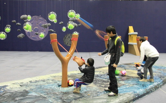 겨울방학을 맞아 ‘앵그리버드 체험전’이 지난 12일부터 일산 킨텍스에서 열리고 있다. 게임 속 앵그리버드들이 현실로 나온 듯한 이번 체험전은 크게 3개의 Zone과 킹 피그의 성, 초대형 새총이 있는 ‘비장의 무기’ 등으로 이루어져 있다. 입장하는 관람객은 입구에 놓인 대형 새총을 보면서 순간적으로 앵그리버드가 되어 날아갈 듯한 착각에 빠지며 리얼 체험이 시작된다.