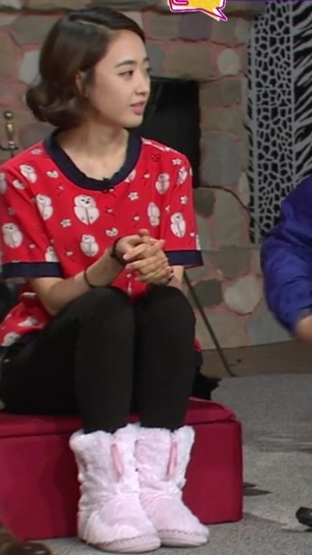 실내 촬영인 만큼 겨울이지만 반팔 옷을 입었으나, 체감온도를 올리기 위한 방편으로 실내용 털 부츠를 선택한 점이 독특하다. 김민정은 핑크색 베드룸 부츠에 맞춰 방석까지 핑크로 컬러를 맞춰 더욱 눈길을 끌었다.
