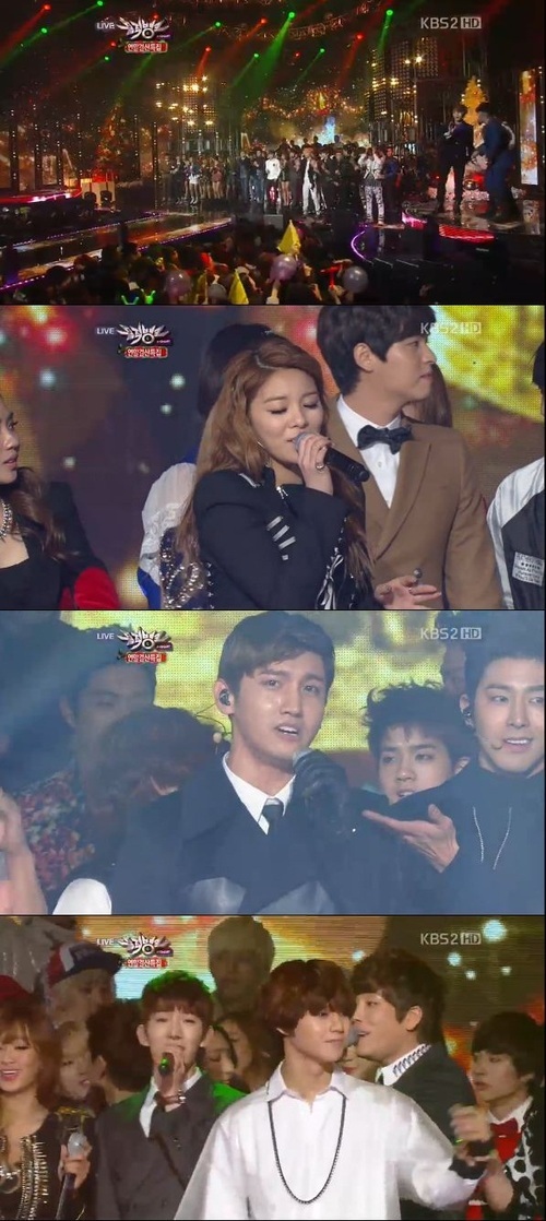 이날 '뮤직뱅크'에는 동방신기, 인피니트, 샤이니, 카라, 비스트, 씨스타, 틴탑, 티아라, 2AM, 정은지, 쿨, 에프엑스, 미쓰에이, 주니엘, FT아일랜드, 에일리, B.A.P, 비투비, 포미닛, 케이윌, 보이프렌드가 출연해 화려한 무대를 꾸몄다.