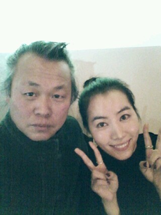 또 다른 사진은 김유미가 깜찍한 V포즈를 취하며 김기덕 감독과 다정하 포즈를 취하고 있다. 김기덕 감독의 카리스마 넘치는 표정과 김유미의 귀요미 포즈가 시선을 끈다.