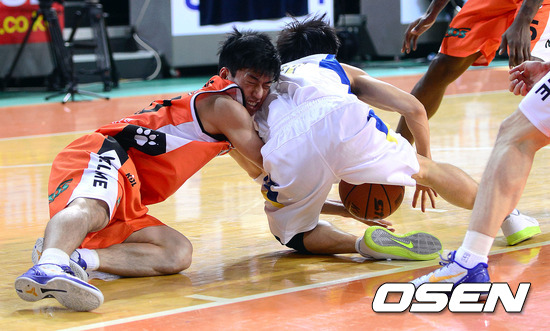 22일 오후 인천 삼산월드체육관에서 열린 'KB 국민카드 2012-2013 프로농구' 인천 전자랜드와 서울 삼성의 경기 4쿼터 전자랜드 이현민과 삼성 이시준이 루즈볼 다툼을 벌이고 있다.