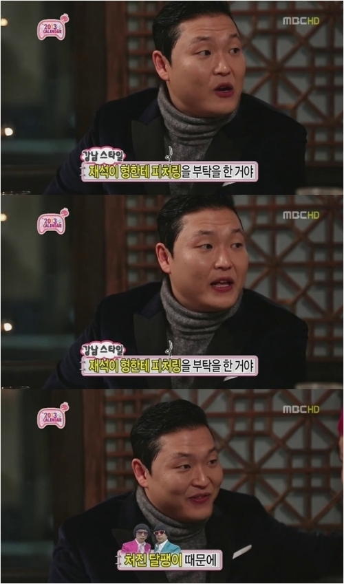 싸이는 “재석이 형한테 ‘강남스타일’ 피처링을 부탁했는데 이적 선배와 하는 ‘처진달팽이’ 때문에 겹쳐서 못한다고 하더라”라고 뒷이야기를 털어놨다.