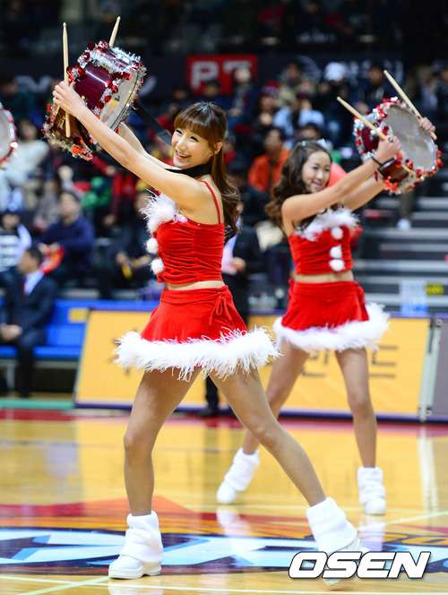 23일 오후 경기 고양체육관에서 열린 'KB 국민카드 2012-2013 프로농구' 고양 오리온스와 안양 KGC의 경기, 경기에 앞서 치어리더가 화려한 공연을 펼치고 있다.