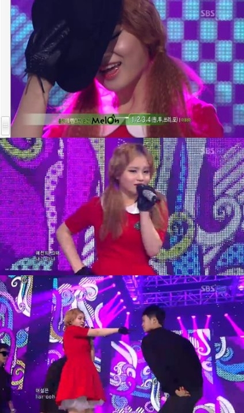 이하이는 23일 오후 3시 20분 방송된 SBS '인기가요'에서 '1.2.3.4'의 마지막 무대를 가졌다.