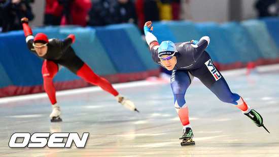 스프린트 스피드스케이팅 남자부 1000M (오른쪽)모태범이 (왼쪽)김영호와 경기를 펼치고 있다. / youngrae@osen.co.kr