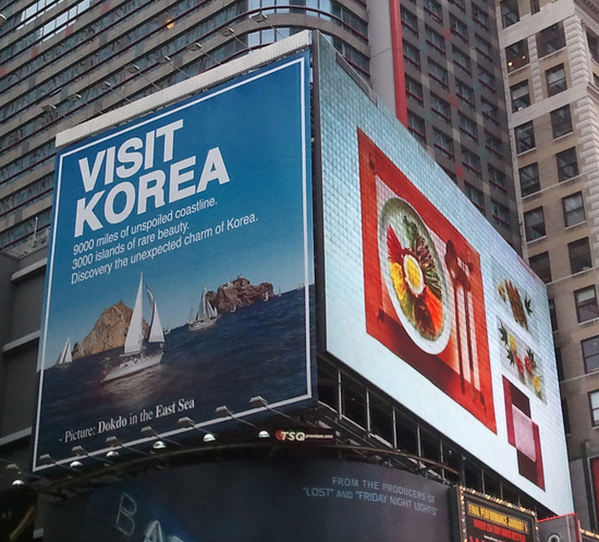 이 전광판은 2주전 가수 김장훈이 후원한 '비지트 코리아(Visit Korea)' 광고를 게재했던 대형 빌보드 광고판 옆에 자리해있다.