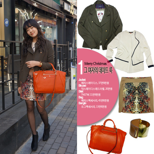 크리스마스 룩하면 떠오르는 컬러가 있다. 레드, 화이트, 그린이다. 제아무리 크리스마스 분위기에 한껏 취하고 싶다지만 이성과의 데이트에서 크리스마스 트리, 산타, 루돌프, 눈사람 등이 될 순 없는 노릇. 크리스마스 데이트를 앞둔 여자라면 크리스마스 컬러를 활용하면서도 자신이 가진 매력을 최대한 드러내는 센스있는 룩이 절실하다.
