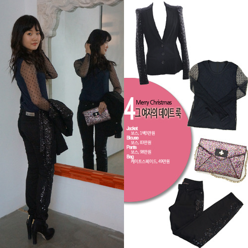 보이스컴의 박예지 사원은 “반짝거리거나 속살이 드러나는 소재의 느낌을 살리기 위해 모던 시크의 대명사라 할 수 있는 ‘올 블랙 룩’을 선택했다”며 “여기에 포인트가 된 다양한 컬러감이 돋보이는 화려한 클러치 백은 크리스마스의 파티 분위기를 고조해 줄 것”이라고 귀띔했다.