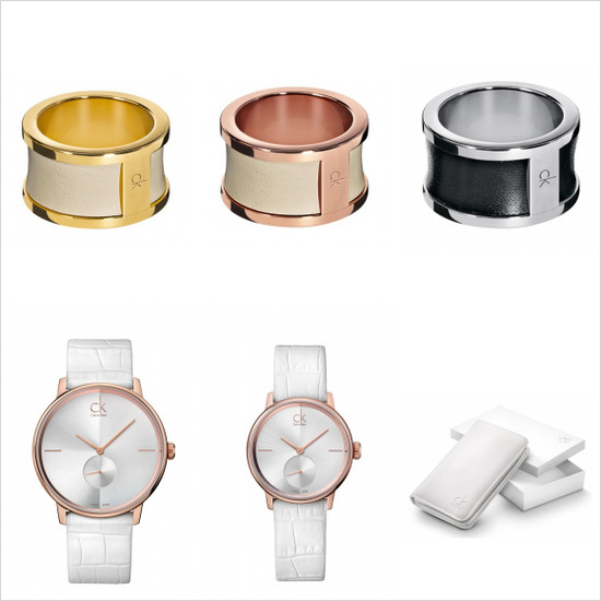 또 매끄러운 라인의 케이스에 크로커타일 프린트 레더 스트랩의 조화가 세련된 남녀 커플 워치 CK 액센트(CK accent)가 있다. CK 관계자는 "블랙, 화이트 그리고 핑크 골드 세 가지로 선보여 같은 컬러 혹은 대조되는 컬러로 커플 매치를 할 수 있다"고 전했다.