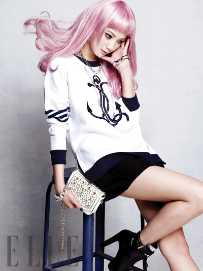옆 라인의 지퍼 디테일로 포인트를 준 마린 로고 프린트 티셔츠에 미니스커트와 큐빅 장식의 미니 크로스백을 매치하는 센스 있는 룩을 연출하기도 했다. 독특한 골드 컬러의 비늘모양 패턴의 턱시도 재킷과 실버 코팅 스키니 팬츠에 보르도한 플라스틱 뱅글과 반지를 매치한 컷에서는 그녀만의 카리스마 있는 모습을 엿볼 수 있었다고 관계자는 전했다.
