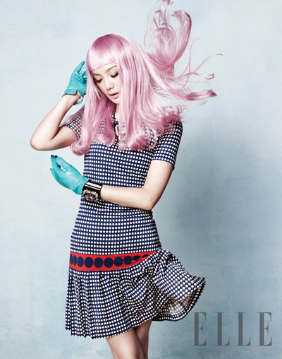 'Sweet & Spicy'를 콘셉트로 한 이번 화보에서 그는 사랑스러운 핑크 헤어와 에지 있는 스타일로 쥬시 꾸뛰르의 의상들을 훌륭히 소화해 냈다. 윤승아는 그래픽적인 도트 패턴의 베리애이션이 매력적인 로우 웨이스트 원피스에 볼드한 블랙 네크리스와 뱅글을 매치해 사랑스러운 매력을 마음껏 뽐냈다.