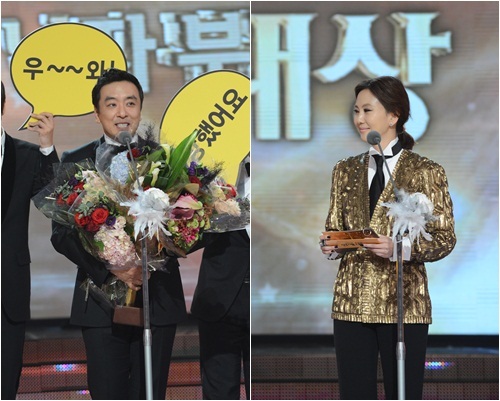 KBS 연예대상에서 최우수상을 탄 김승우는 "삼성동에 사는 시청자 김남주 씨께 감사드린다. 연기대상 시상식에서도 아내에게 나와 같은 일이 생기길 바란다"는 애정 가득한 소감으로 김남주의 수상을 기원했다. 그런가 하면 그날 시상자로 무대를 찾은 김남주 역시 "KBS 일이라면 남의 일 같지가 않다"며 올해 KBS 예능과 드라마를 주름 잡은 장본인들다운 인사를 건네 눈길을 끌기도.