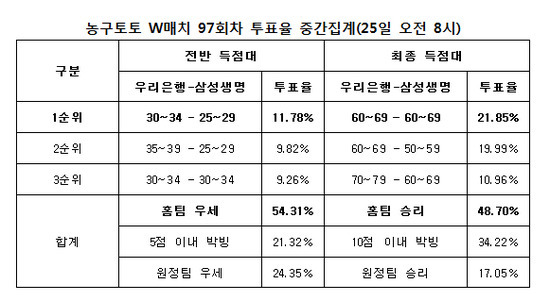 2012-2013시즌 농구토토 W매치 97회차 투표율 중간집계 결과
