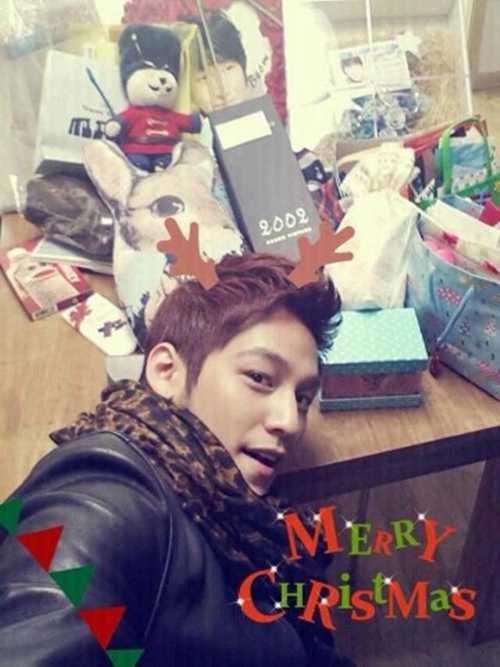사진 속 김범은 팬들로부터 받은 크리스마스 선물을 앞에 두고 환한 미소와 함께 카메라를 응시하고 있다. 특히 김범은 가죽재킷과 호피무늬 머플러, 짧은 헤어스타일로 물오른 남성미를 뽐낸다. 또 그가 손수 사진에 그려 넣은 루돌프 뿔 그림과 성탄절 인사가 눈길을 끈다.