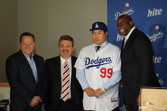 다저스는 지난 8월 보스턴과 4대5 대형 트레이드를 단행하며 전력 보강을 시작했다. 곤잘레스는 6년간 1억2000만 달러, 크로포드는 5년간 1억 달러 이상 등 총액 2억6000만 달러의 잔여 연봉을 부담하기로 했다. 여기에 FA 시장에서 투수 최대어 그레인키를 7년간 총액 1억4700만 달러에 영입했고, 류현진에게도 6년간 기본 총액 3600만 달러에 약 2570만 달러의 포스팅 금액까지 약 6200만 달러를 투자했다.