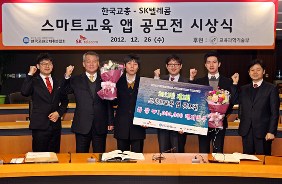 SK텔레콤과 한국교원단체총연합회가 주관한 '스마트교육 앱 공모전' 시상식이 SK텔레콤 T-타워(서울 중구 을지로)에서 26일 열렸다.