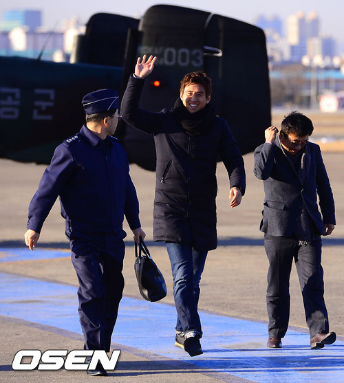 구자철이 헬기를 타고 공군비행장에 도착하고 있다