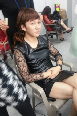 사진 속 김현우는 머리 위해 가발을 얹은 채 자못 여성스러운(?) 새침한 표정으로 카메라를 응시하고 있다. 검정색의 망사 의상과 짧은 스커트의 길이가 눈길을 끄는 모습이다.