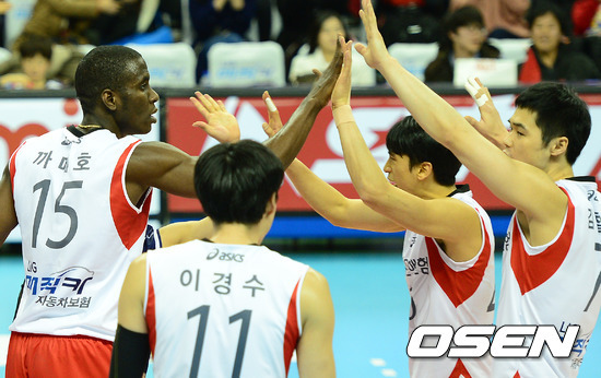 LIG는 26일 구미박정희체육관에서 열린 ‘2012-2013 NH농협 V-리그’ 남자부 KEPCO와의 경기에서 공수 양면에서 한 수 위의 기량을 선보이며 3-0(25-21 25-20 30-28)으로 이겼다. 승점 3점을 추가한 4위 LIG(승점 22)는 3위 대한항공(승점 23)을 바짝 추격했다. 반면 최하위 KEPCO는 10연패의 늪에 빠졌다.