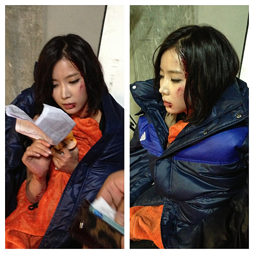 [OSEN=박지언 인턴기자] 배우 임수향이 촬영 중 피투성이 얼굴을 공개했다.