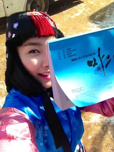 사진 속 김소은은 MBC 월화드라마 '마의'의 대본 뒤에 얼굴을 숨기고 있다. 고운 한복을 입고 머리에는 조바위를 쓴 채 드라마 속 사랑스러운 숙휘공주의 자태를 드러내고 있다.