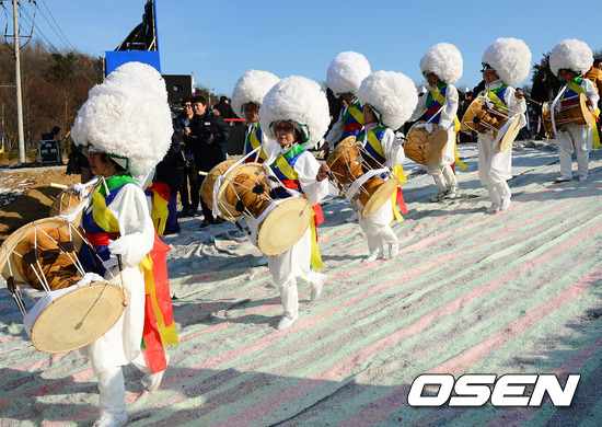 27일 오후 대구 수성구 연호동 부지에서 열린 대구야구장 기공식에서 공사에 앞서 길놀이 공연이 진행되고 있다.