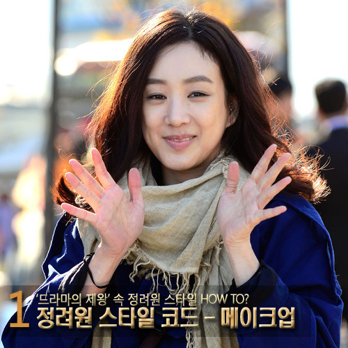현진 실장은 “드라마 속 정려원의 메이크업은 거의 하지 않은 듯 자연스럽다”며 “피부는 거의 매트하게 하고, 아이와 립은 피치계열로 깔끔하게 마무리 할 것”라고 전했다.