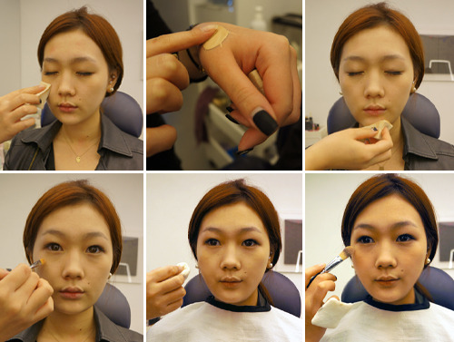 ② 한 톤 밝은 파운데이션으로 다크서클 커버한다
