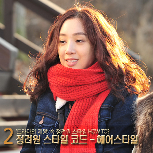‘드라마의 제왕’에서 정려원은 어깨까지 내려오는 웨이브헤어로 시선을 사로잡는다. 굵기가 굵은 물결웨이브가 1960년대 히피무드를 연상케한다.