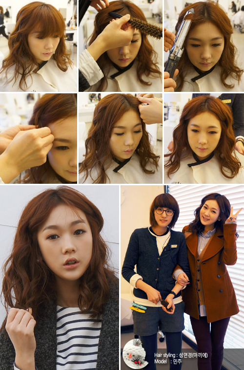 “웨이브를 줄 때에는 모근에 가까운 부위부터 모발의 끝방향으로 웨이브를 주어야 모발의 손상을 줄일 수 있습니다. 또한 사선 웨이브를 할 때에는 중간 중간 방향을 틀어주면서 해야 풍성한 컬링을 연출할 수 있습니다.”