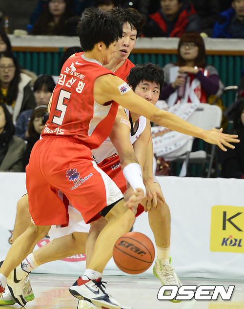 2쿼터 KGC 양희종이 SK 김선형의 수비를 피해 패스를 시도하고 있다.