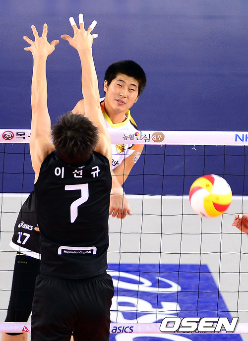 27일 오후 천안 유관순체육관에서 열린 '2012-2013 NH농협 V-리그' 남자부 현대캐피탈과 러시앤캐시의 경기, 2세트 러시앤캐시 박상하가 공격을 시도하고 있다.