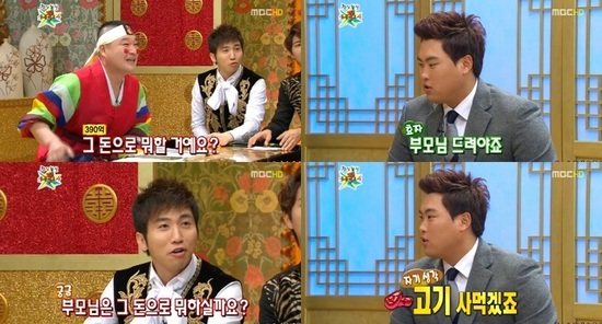 이어 "그럼 그 연봉으로 부모님은 무엇을 하실 것 같냐"는 질문에는 현재 KBS 2TV '개그콘서트'에서 유행 중인 "고기 사먹겠죠"라는 유행어로 재치 넘치게 대답해 보는 이들을 폭소케 했다.
