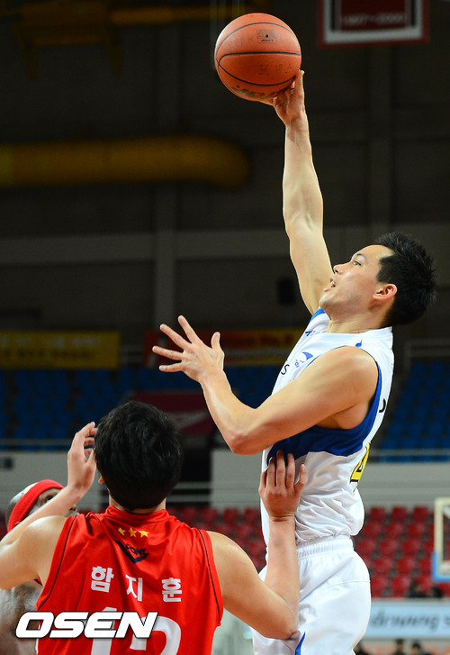 28일 저녁 울산 중구 남외동 동천체육관에서 열린 KB 국민카드 2012-2013 프로농구 울산 모비스 피버스와 서울 삼성 썬더스의 경기, 3쿼터 삼성 이동준이 득점에 성공하고 있다.