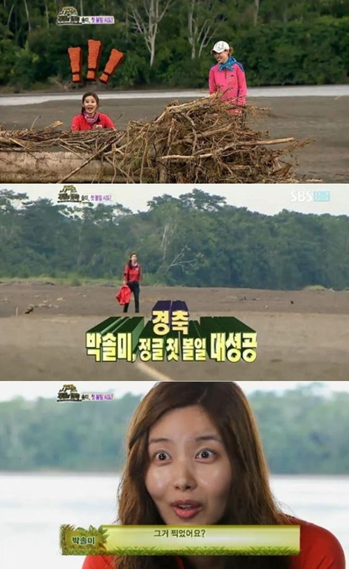 박솔미는 28일 방송된 SBS '정글의 법칙 in 아마존'에서 김병만, 추성훈, 노우진, 박정철, 미르와 함께 유일한 여성 멤버로 참여, 아마존에서의 생활을 시작했다.