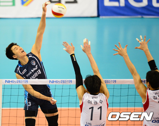 NH 농협 2012-2013 프로배구 V 리그 LIG손해보험과 삼성화재의 경기가 29일 오후 경상북도 구미시 광평동 박정희체육관에서 열렸다.