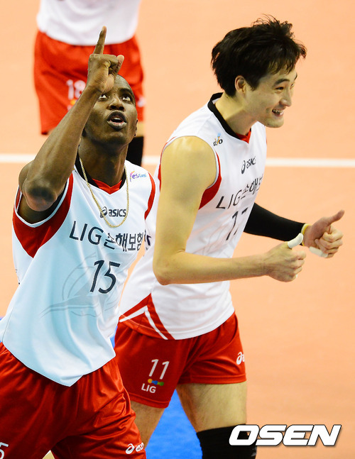 LIG는 29일 구미박정희체육관에서 열린 ‘2012-2013 NH농협 V-리그’ 남자부 삼성화재와의 경기에서 세트 막판의 집중력을 앞세워 3-0(27-25 25-22 34-32)으로 이겼다.